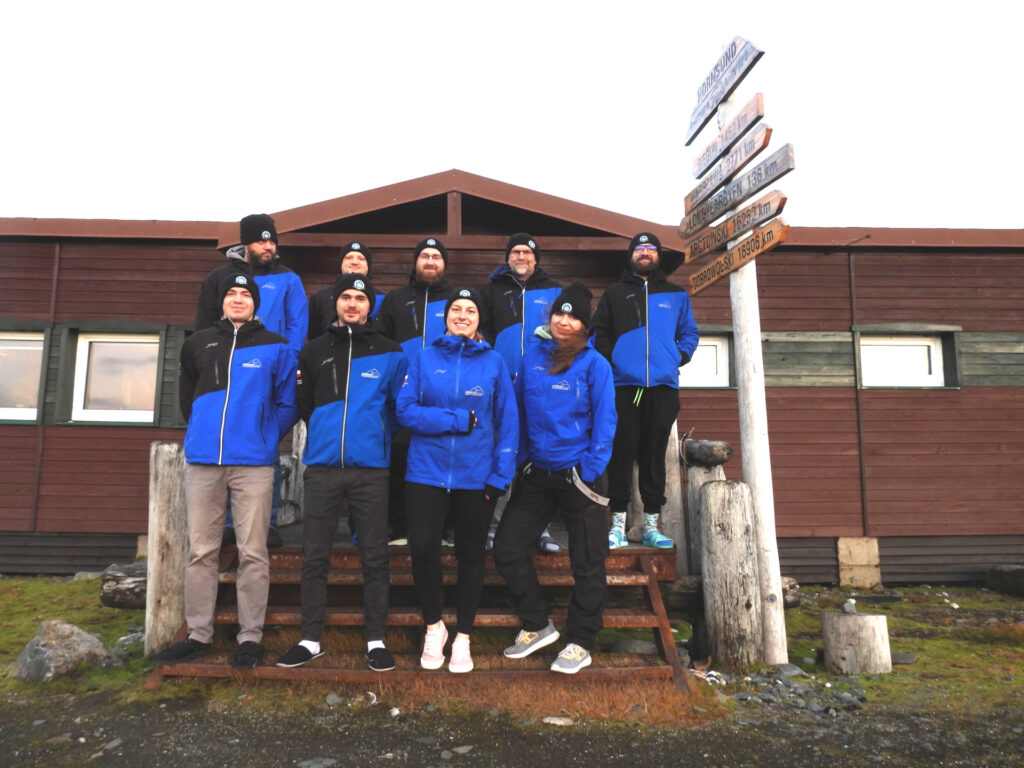 Stoją od lewej: Mikołaj Karwat (informatyk), Dariusz Ignatiuk(kierownik, glacjolog), Marta Kondracka (geofizyk), Mirosław Szumny (meteorolog), Paweł Strzelewicz (2, środowisko abiotyczne), Łukasz Stachnik (środowisko biotyczne), Damian Chwiałkowski (mechanik), Maciej Benedyk (z-ca kierownika, meteorolog), Piotr Andryszczak (geofizyk, elektronik), Dagmara Bożek-Andryszczak (administrator, dydaktyk EDUSCIENCE).